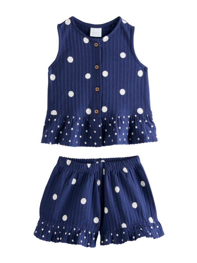 For girls, a co-ord always looks put-together, and this navy polkadot set is both gorgeous and comfortable. Paired with silver or white sandals, it is the perfect transitional spring/summer item. Sizing ranges from 3 months up to 7 years.
